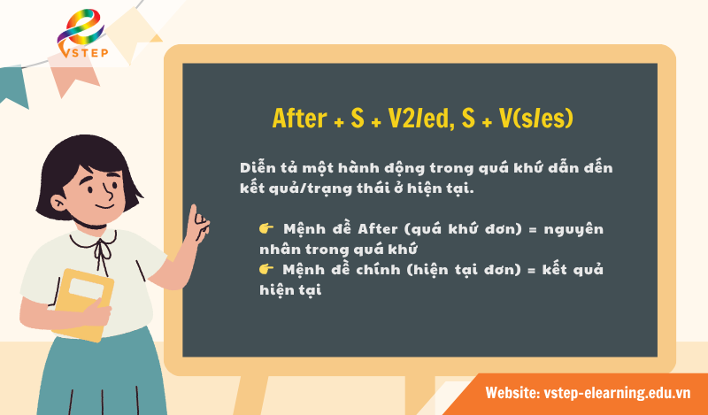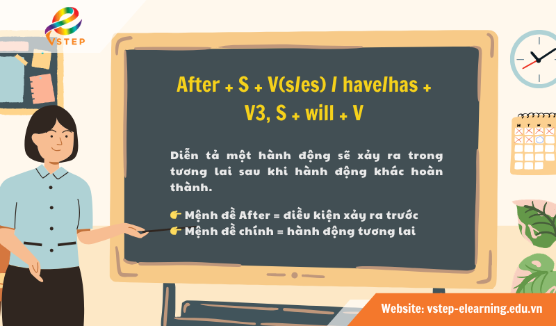 Nhiều người học tiếng Anh thường thắc mắc không biết sau After dùng thì gì vì cấu trúc ngữ pháp khá nhiều cách chia thì. Trong bài viết này, cùng VSTEP E-Learning tìm hiểu định nghĩa của After, các cấu trúc After phổ biến để có thể sử dụng cấu trúc này một cách chính xác và tự nhiên nhất nhé!